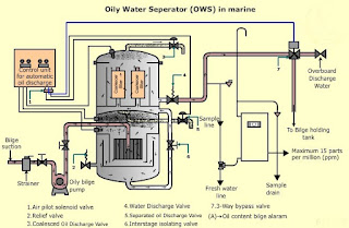 Because bilgewater cannot be directly pumped out into the sea it is first passed through an oily water separator where the level of suspended oil particles in the mixture is significantly brought down.